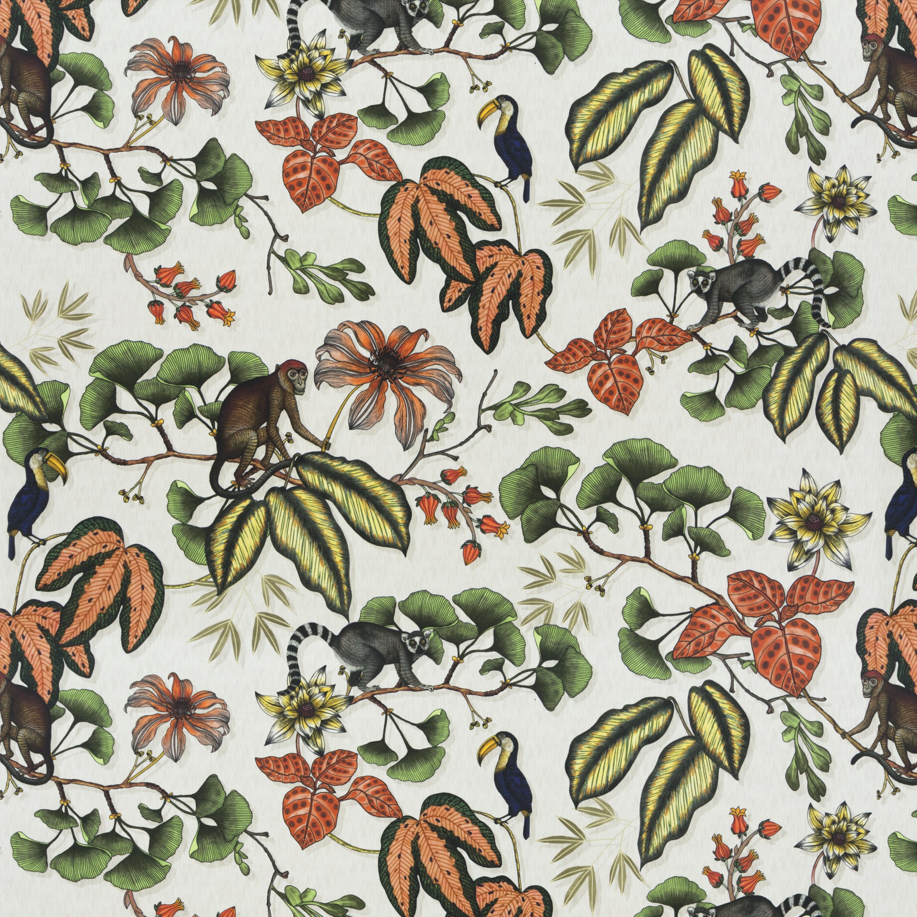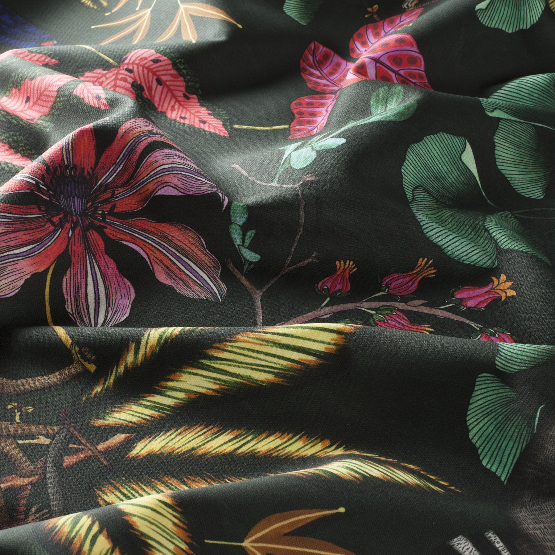Curtain fabric name: FANTASTIC MADAGASCAR, Fabric Brand: Chivasso Curtain Fabrics, Width / Height: 138 cm, Material: 67% viscose, 33% linen, Length of repeat: 95 cm, Martindale n.t.v. rubs, Fabric code: CH3044, Colors: CH3044-010, CH3044-040, CH3044-060, CH3044-061, CH3044-080, CH3044-091, Tags: Decoration fabric, Printed, Tabby weave, Floral, Large-patterned. Order Chivasso FANTASTIC MADAGASCAR online, or visit our physical shop in Rotterdam for Carlucci FANTASTIC MADAGASCAR.